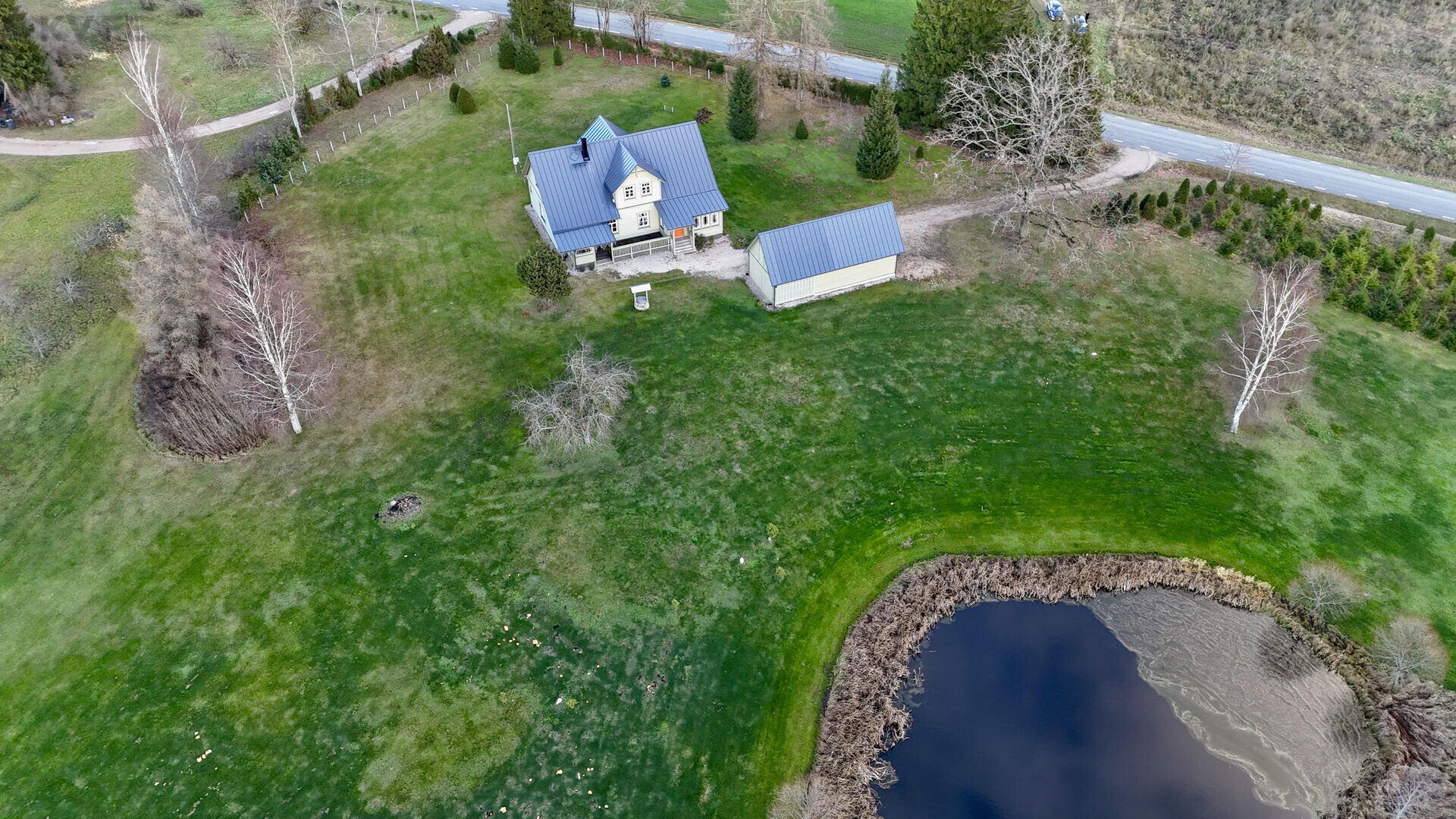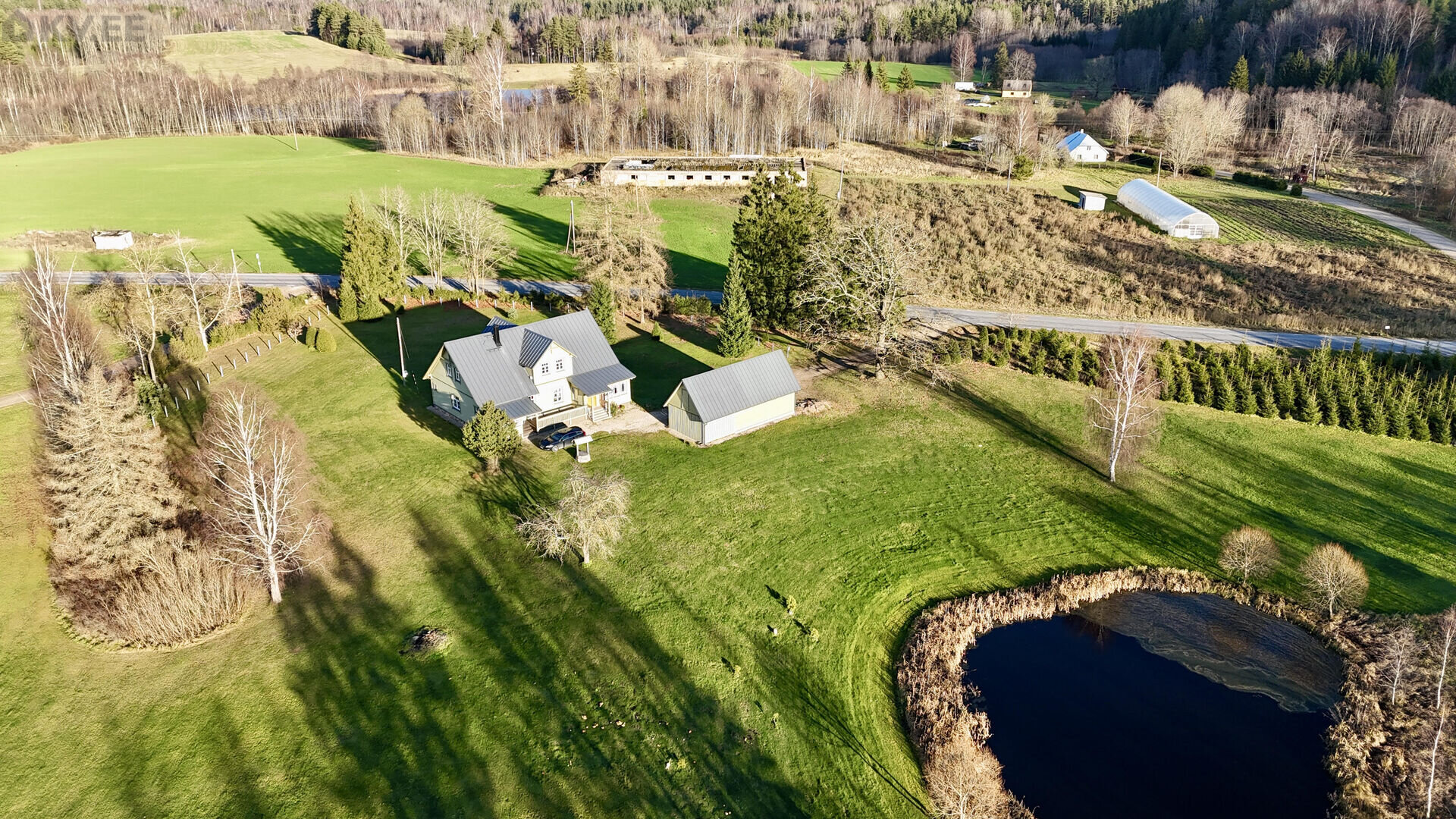 Uut omaniku ootab maalilise looduse keskel asuv hubane kodu koos praktilise kõrvalhoonega (garaaz ja kuur). Kinnistu, mille suurus on 3,58 hektarit, paikneb mugavalt asfaltkattega riigitee ääres, pakkudes lihtsat ligipääsu. Kinnistu piiril kasvavad tihedad okaspuud, mis loovad privaatse õhkkonna ja annavad piirkonnale rohelise raamistiku. Reljeefne maastik ning kinnistul asuv tiik avavad silmailu pakkuvad vaated ümbruskonnale.